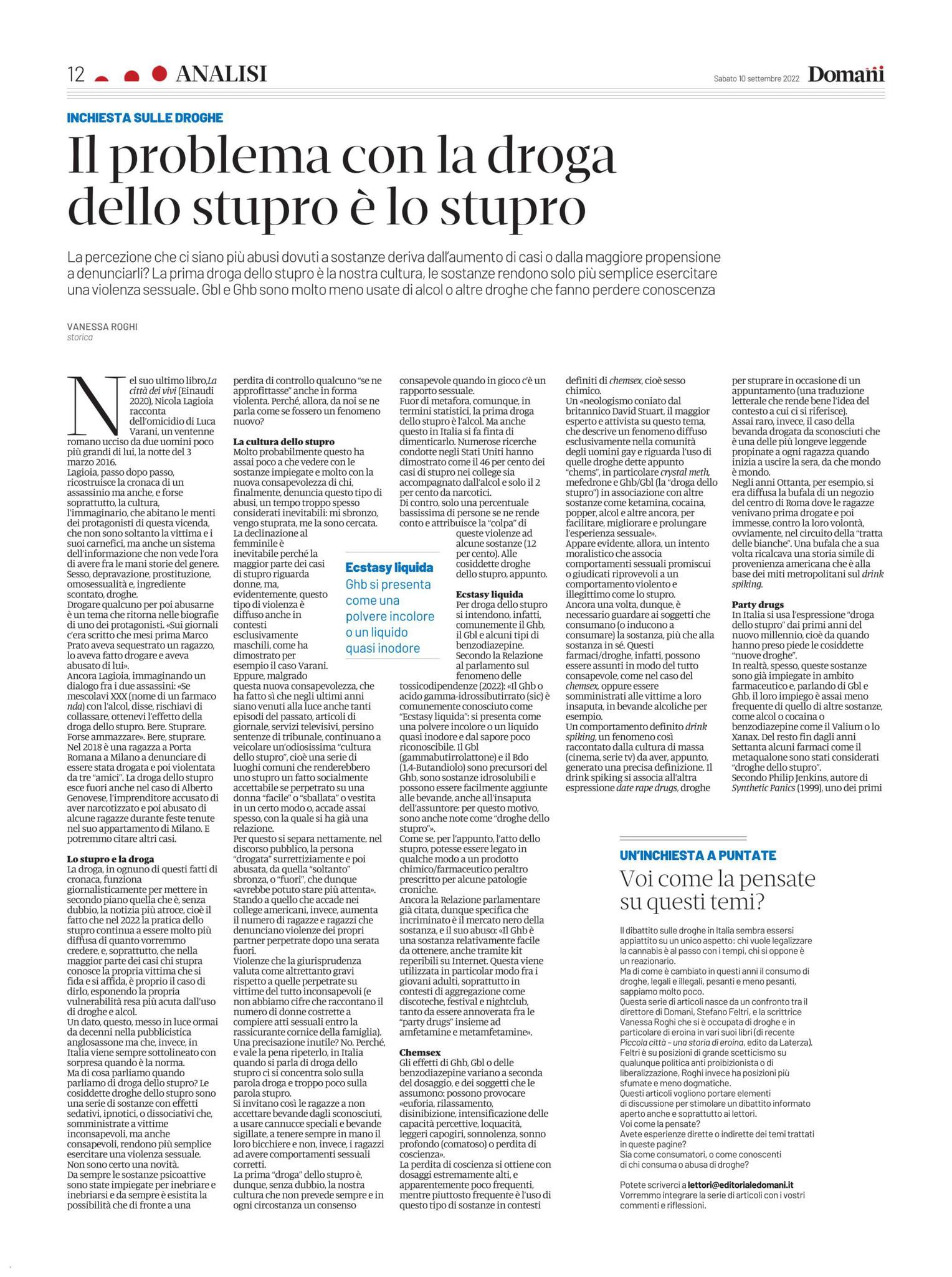 La droga, in ognuno di questi fatti di cronaca, funziona giornalisticamente per mettere in secondo piano quella che è, senza dubbio, la notizia più atroce, cioè il fatto che nel 2022 la pratica dello stupro continua a essere molto più diffusa di quanto vorremmo credere, e, soprattutto, che nella maggior parte dei casi chi stupra conosce la propria vittima che si fida e si affida, è proprio il caso di dirlo, esponendo la propria vulnerabilità resa più acuta dall’uso di droghe e alcol. Un dato, questo, messo in luce ormai da decenni nella pubblicistica anglosassone ma che, invece, in Italia viene sempre sottolineato con sorpresa quando è la norma.